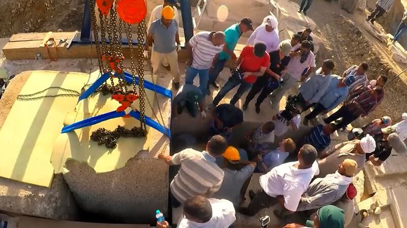 Trabajadores que realizaban obras en la zona notaron la diferencia en el suelo que estaban excavando. Comunicaron la anomalía a las autoridades del Ministerio de Turismo y Antigüedades de Egipto, quienes destinaron una misión para realizar una labor arqueológica.