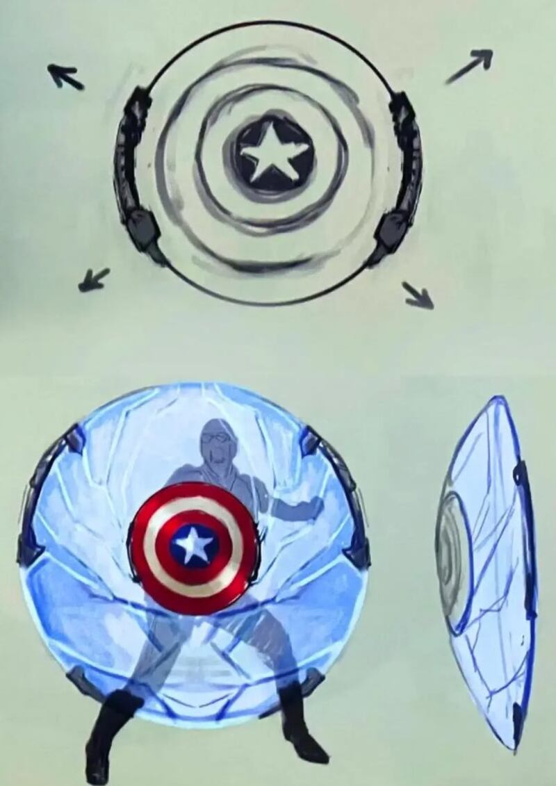 Un informe del sitio web de Cinemas Cómics muestra imágenes del nuevo escudo, que fueron reveladas por el ilustrador de conceptos de desarollo de Marvel, Wesley Burt, extraídas del libro de arte de The Falcon and the Winter Soldier.