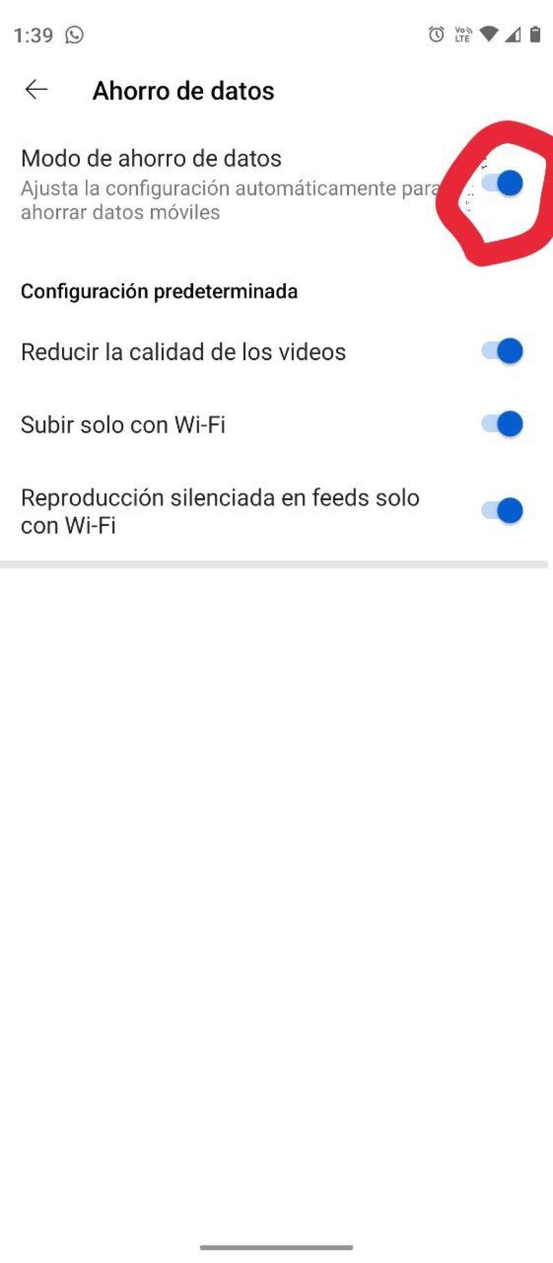 Al ingresar a la sección de “Ahorro de datos” debemos comprobar que todos los indicadores se encuentren desactivados, ya que es al estar en función nuestros videos se reproducirán con terrible calidad.