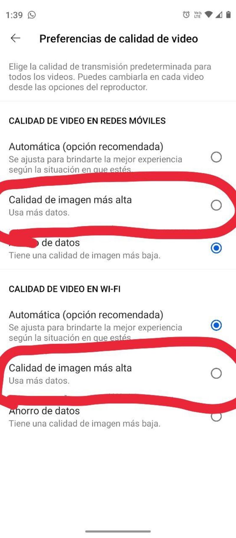 Mientras en el apartado de “Preferencias de Calidad de Video”, la configuración por defecto siempre es “Auto” o “Automática”: