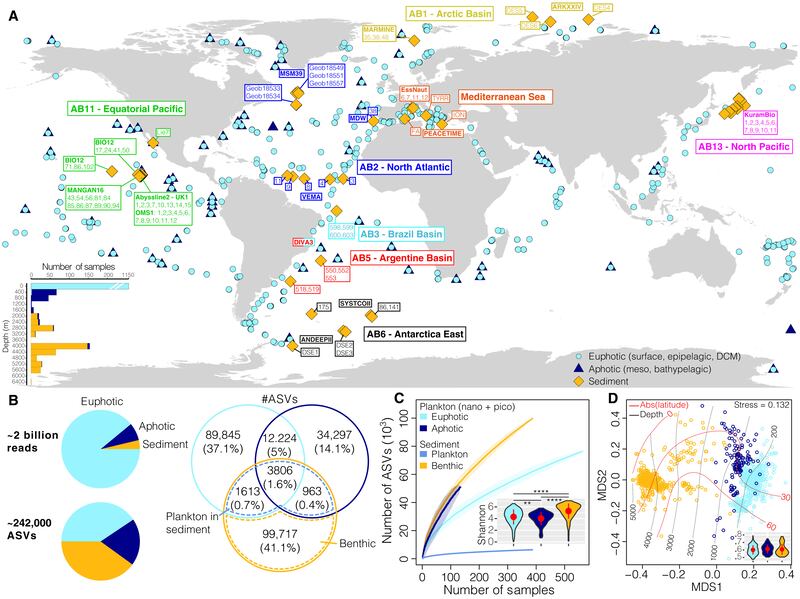 El trabajo descubrió que “la diversidad de DOS es al menos tres veces mayor (en el reino abisal) que en los reinos pelágicos, con casi dos tercios representados por eucariotas abundantes, pero desconocidos”.