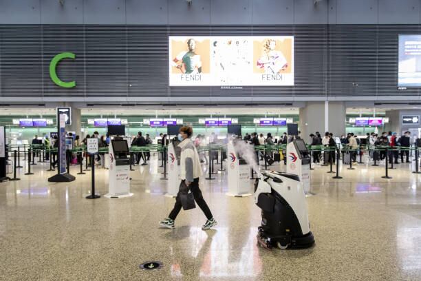 Los robo-sprayers, por su parte, se encargan de rociar desinfectante por los pasillos de los hospitales temporales en Shanghai.