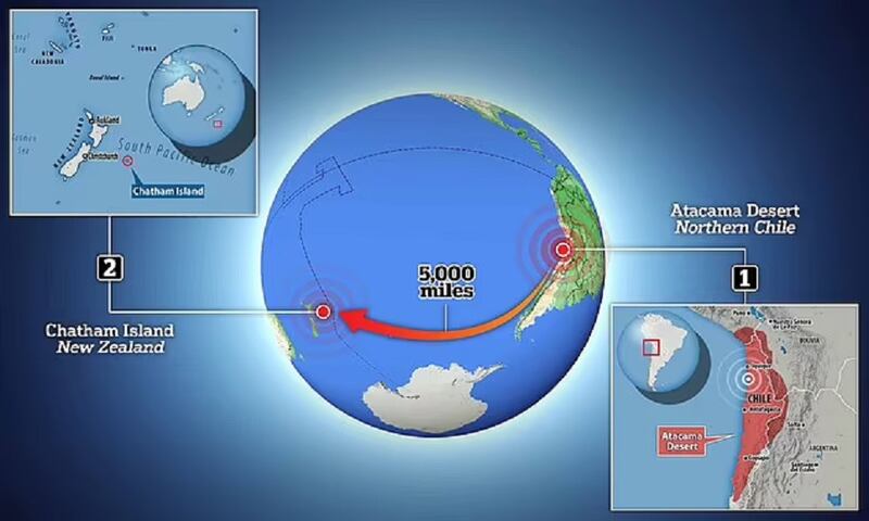 El informe de un equipo de expertos de la Universidad de Southampton encontró que hace 3.800 años se registró un movimiento similar, que fue tan fuerte que provocó un tsunami a más de 8 mil kilómetros de distancia, en Nueva Zelanda.
