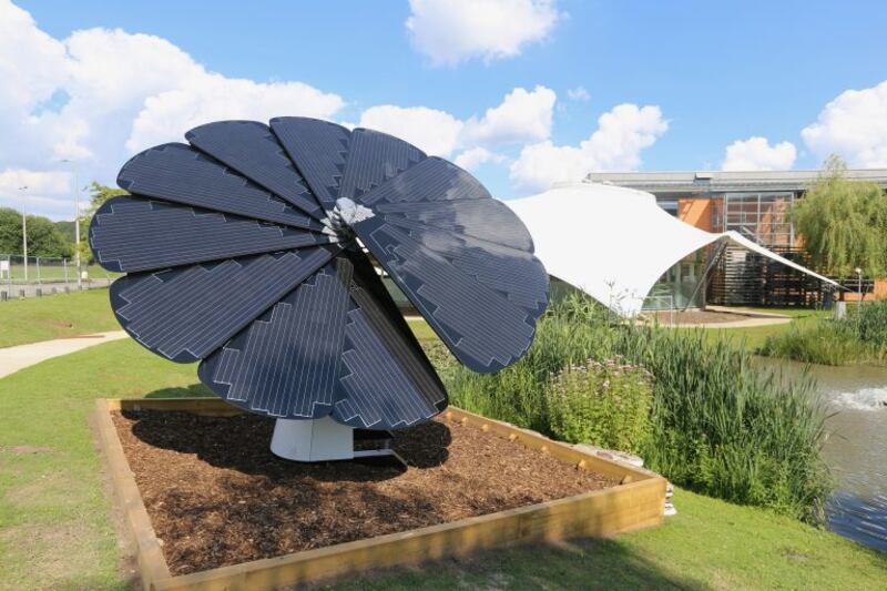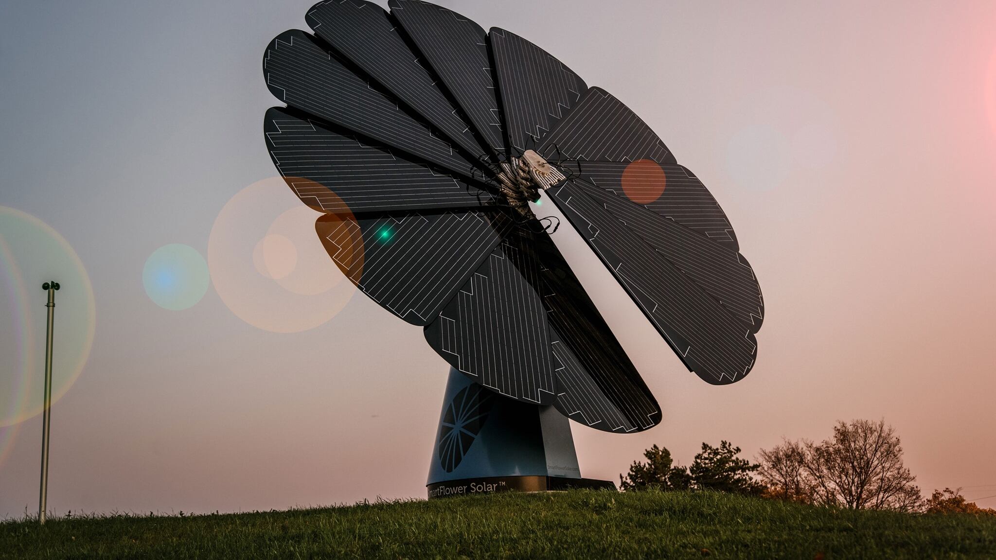 El dispositivo tiene forma de flor con un sistema de seguimiento de dos ejes en su núcleo. Al amanecer, Smartflower abre sus paneles hasta el ángulo óptimo de 90º con respecto al Sol y sigue la trayectoria del astro por el cielo.