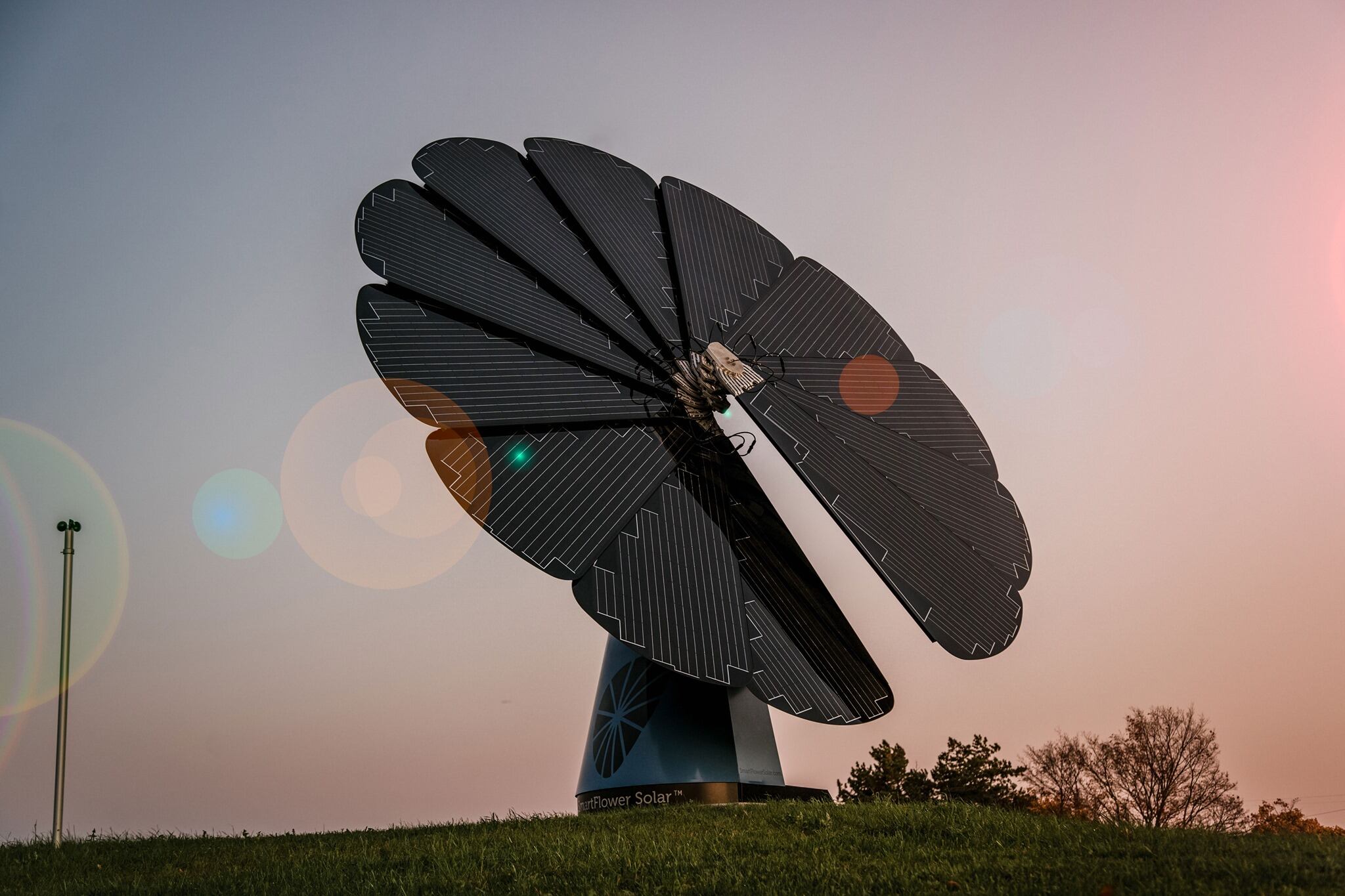 El dispositivo tiene forma de flor con un sistema de seguimiento de dos ejes en su núcleo. Al amanecer, Smartflower abre sus paneles hasta el ángulo óptimo de 90º con respecto al Sol y sigue la trayectoria del astro por el cielo.