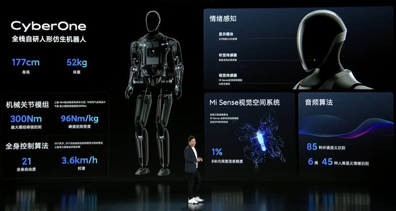 Xiaomi no reveló muchos detalles sobre el robot, pero Lei Jun reveló que esta máquina pesa 52 kilos y que mide 1,77 metros, por lo que es ligero y de una altura promedio de adulto.