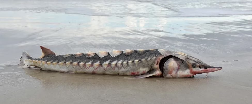 El esturión atlántico prehistórico que apareció en una playa de la nada