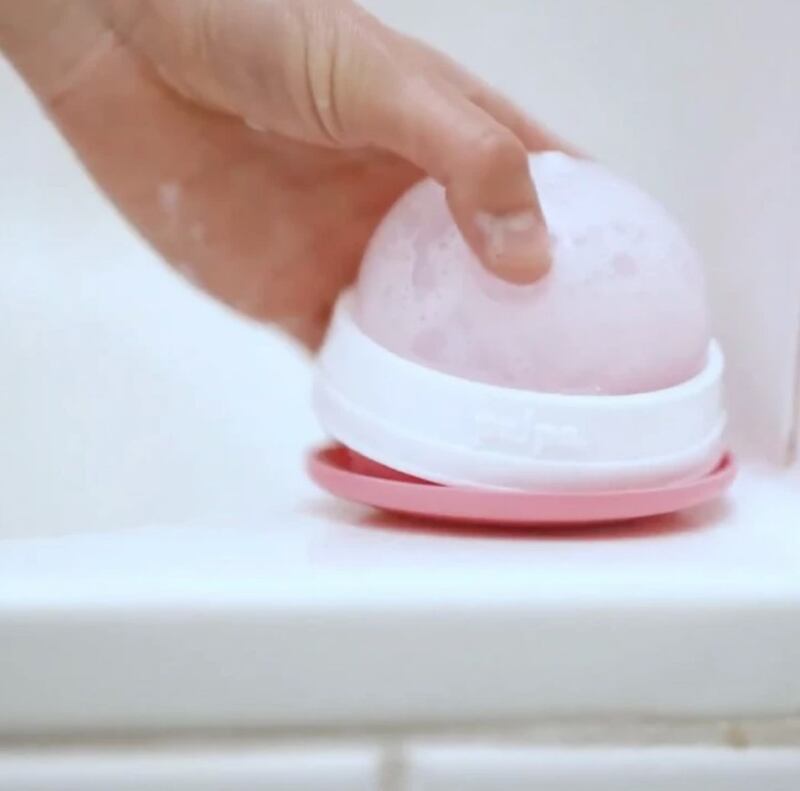 De acuerdo con la nota del sitio web Para Ti, el dispositivo tiene forma de mama y se llena de jabón líquido para ser utilizado como esponja durante la ducha.