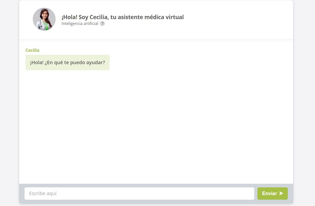 Con una base sólida en algoritmos de inteligencia artificial y datos médicos verificados, Cecilia se presenta como una fuente confiable de respuestas rápidas y precisas. Su función principal es proporcionar información sobre síntomas, condiciones médicas, tratamientos y recomendaciones de estilo de vida. Esto permite a los usuarios acceder a una fuente valiosa de conocimiento médico, adaptado a sus necesidades y casos particulares.