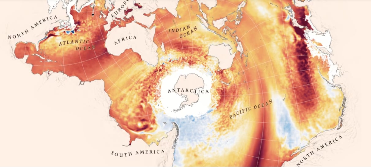 Ahí se relataba cómo entre el año 2022 y 2023, el promedio mundial del nivel del mar experimentó un notable aumento de 0,76 cm, lo que representa el mayor salto anual registrado en más de una década. Donde esta cambio sería el equivalente a vaciar una cuarta parte del Lago Superior en el océano durante un año. En otras palabras se trata de un volumen considerable que ha traído como consecuencia un incremento del nivel del agua en los océanos.