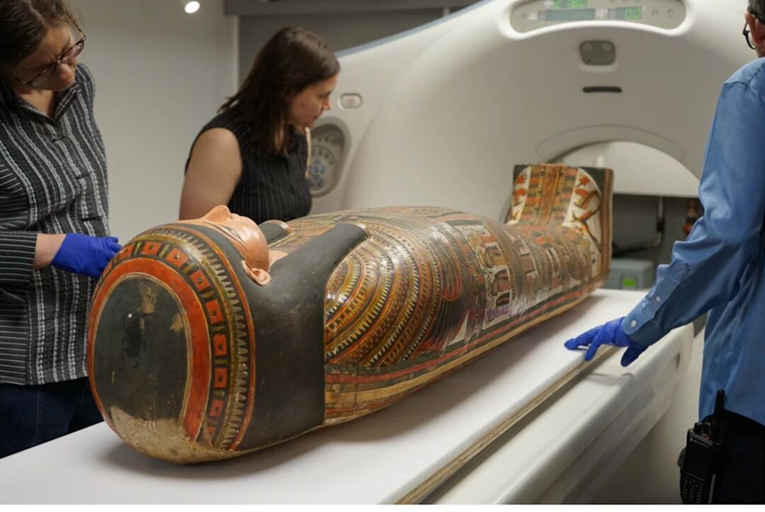 La princesa egipcia está conservada en una especie de cartonaje (ataúd de material similar al papel maché), su cuerpo parecía estar “sellado” sin un punto de entrada visible, lo que llevó a los científicos a meterla dentro de una máquina para hacerle escaneos de tomografía computarizada (CT).