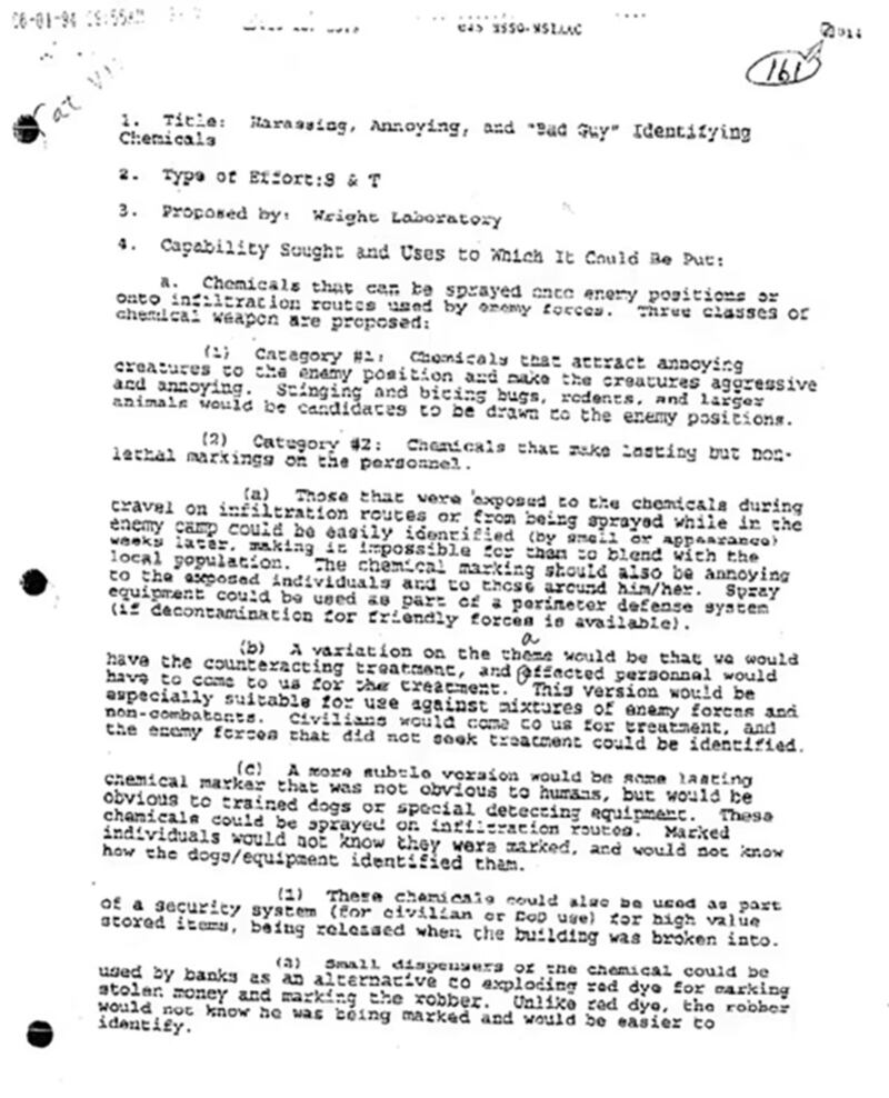 Este proyecto fue iniciado por científicos del Laboratorio Wright, en 1994. Gastaron alrededor de 7.5 millones de dólares en un arma, no letal, “que contenía una sustancia química que haría que los soldados enemigos se volvieran homosexuales“, reza parte de uno de los documentos.