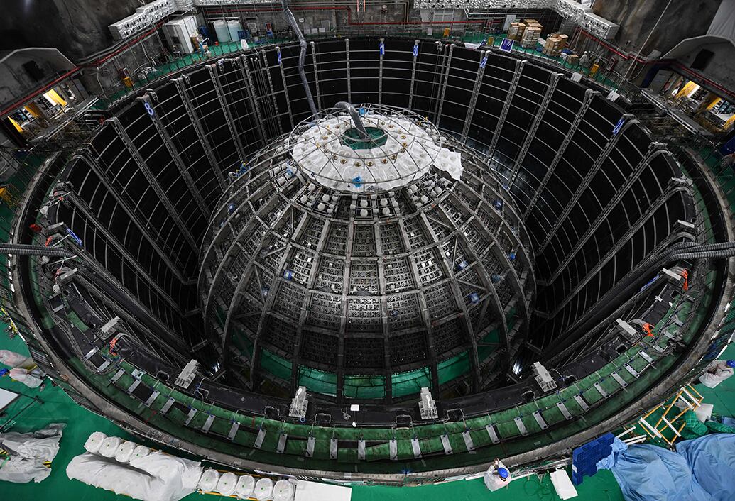 A grandes rasgos, el Observatorio Subterráneo de Neutrinos de Jiangmen, conocido como JUNO, es una piscina gigante, a 700 metros bajo tierra y del tamaño de un edificio de quince pisos. En su interior, el observatorio contiene 20.000 toneladas de líquido centelleador, una sustancia capaz de brillar con destellos mínimos cuando un neutrino lo toca.