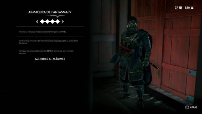 Armadura de Fantasma: Otra armadura ideal para asaltar fuertes y que se consigue durante el videojuego. Si bien no aumenta la vida, defensa o daño, permite entrar en la llamada Postura Fantasma, matando a cinco enemigos sin sufrir daño en lugar de siete. Además, cada vez que el jugador acaba con una víctima, existe una probabilidad de que los enemigos huyan. En resumen, más opciones ofensivas que otras armaduras.