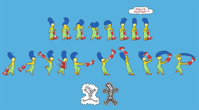 El mismo portal postea dos imágenes que a continuación les compartimos también. La primera es la del mismo Binky, que está arriba (lo consideran el primer gran éxito de Groening). Y la segunda es la única en la que se nota que Marge tiene un par de orejas de conejo: en el videojuego The Simpson Arcade Game, de Konami.
