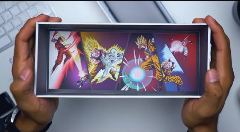 Abres la caja y te encuentras, antes de ver el smartphone, con una serie de pegatinas de los personajes de Dragon Ball Z como Mr Satán, el Majin Buu gordo, Videl, Gohan en su versión Gran Saiyaman, Goten, el Supremo Kaioshin, el planeta de Kaio Sama. No vas a querer desperdiciar ni el plástico.