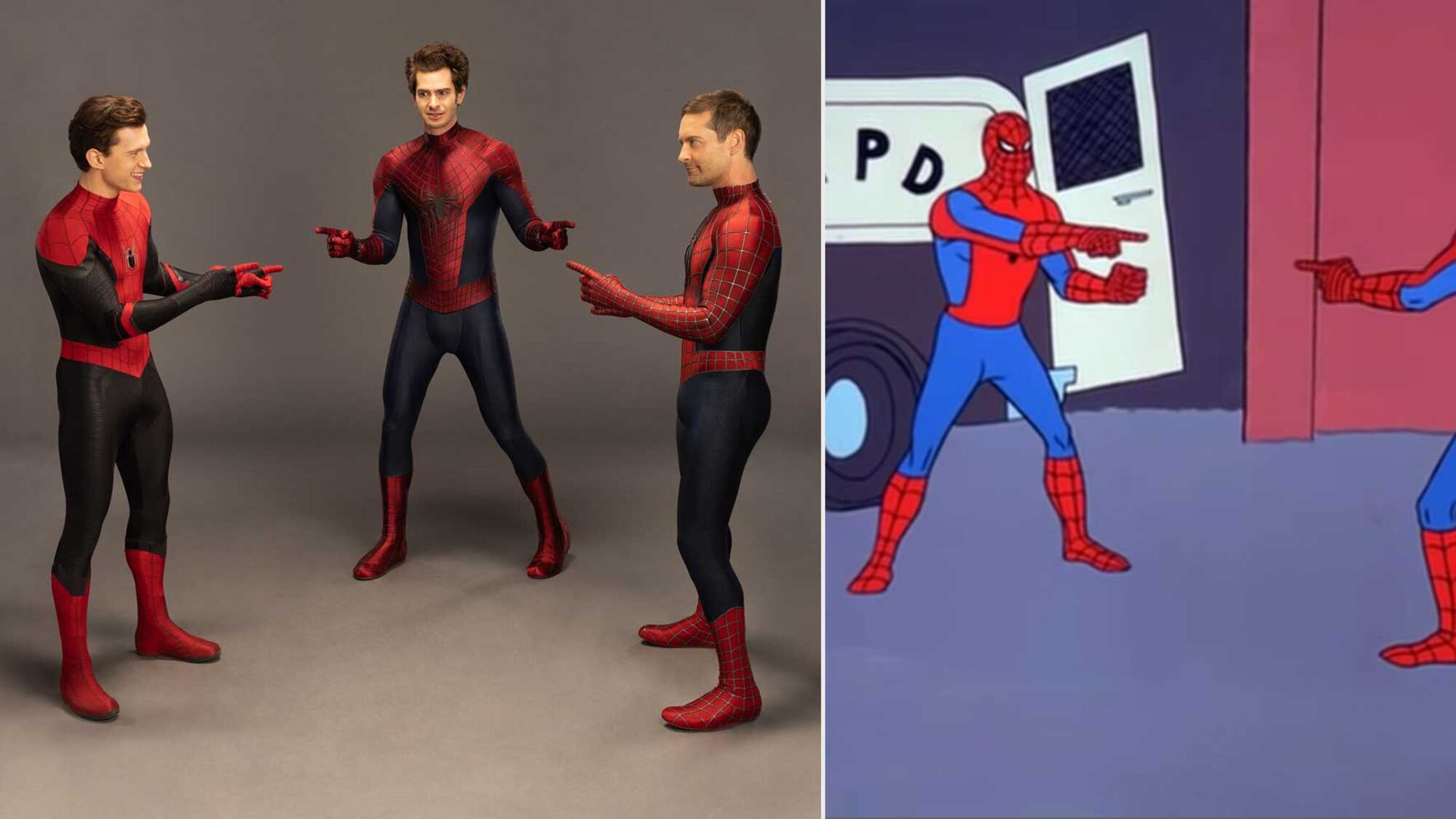 Tom Holland, Andrew Garfield y Tobey Maguire, los actores que han personificado al súper héroe y que se unieron para la última película, recrearon el meme para realizar el lanzamiento digital y Blu-ray de Spider-Man: No Way Home, imagen que fue compartida en las redes sociales por Sony Pictures.