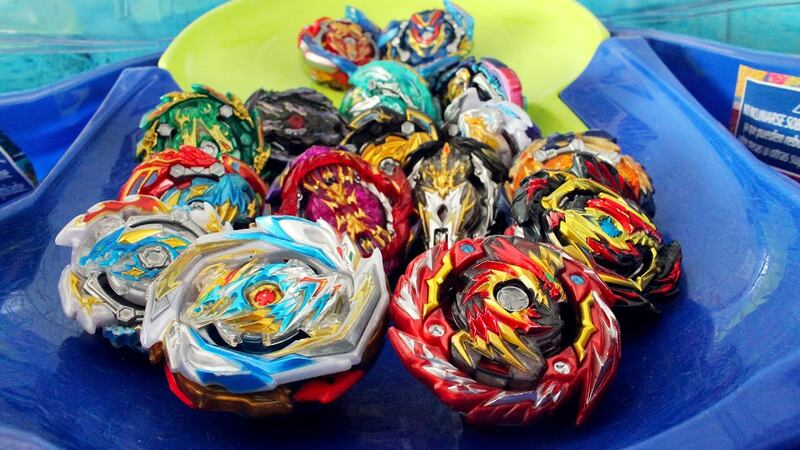 Los primeros Beyblades incluían Ultimate Frostic Dranzer, Spin Dragoon y Saizo. Los trompos pelean en arenas llamadas Beystadiums, que tienen algo del coliseo con secciones abiertas en las paredes y aberturas en los costados para lanzarse. Cada Beyblade tiene un BeyLauncher, que se usa para lanzarse a la batalla.
