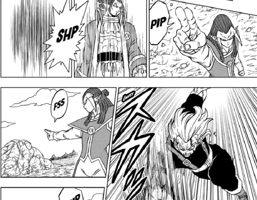 El saiyajin criado en la Tierra logra esquivar varios ataques de este peleador peligroso y le confiesa que no es capaz de activar el Ultra Instinto debido a que está enfadado; una evidencia más de que ni Goku ni Vegeta han aprendido de Bills y Whis el tema de que para las batallas no hay que tener sentimientos.