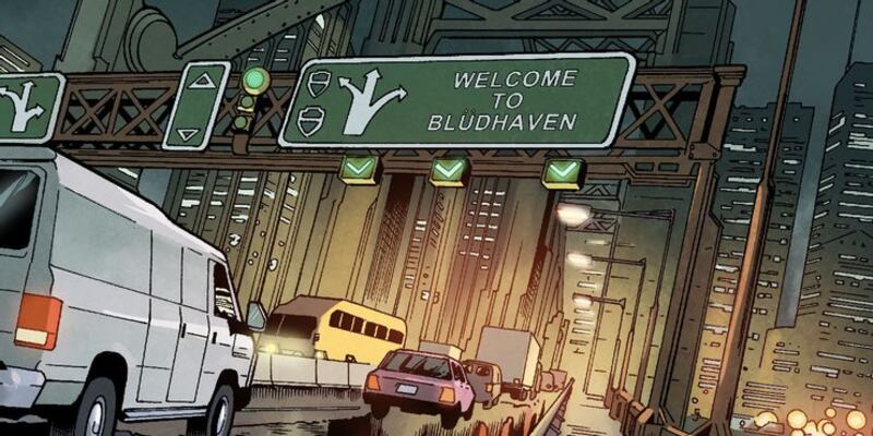 Otro huevo de pascua sobre Titans fue Blüdhaven. Antes de irse de Gotham City, Selina Kyle (Catwoman) le dice a Batman que tiene la intención de dirigirse al norte y que puede detenerse en una ciudad llamada Blüdhaven, posiblemente la única ciudad en la Tierra peor que Gotham City en términos de corrupción.