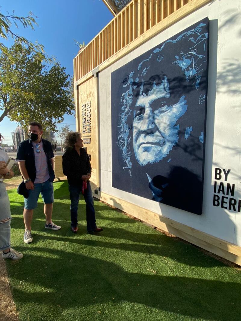 El artista visual Ian Berry es uno de los protagonistas de este espacio. El inglés, que basa su trabajo en el desarrollo de obras de arte hechas con retazos de mezclilla, presentó los retratos en denim de los músicos chilenos Jorge González, Anita Tijoux y Roberto Márquez (Illapu).