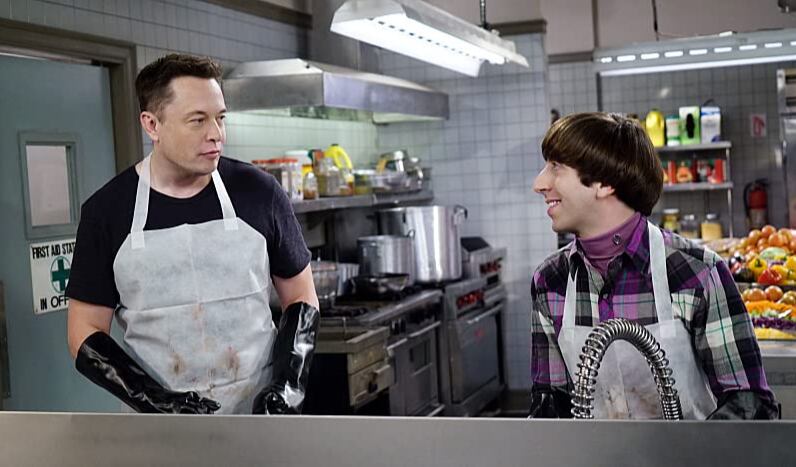 Musk tiene una conversación con Howard Wolowitz (interpretado por Simon Helberg) en la popular serie sobre científicos. Ambos están como voluntarios en un comedor durante Acción de Gracias. El episodio se llama The Platonic Permutation.