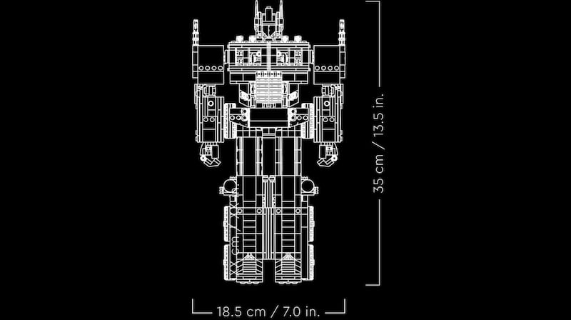 Cuando está convertido en Optimus Prime, el modo Autobot, el set puede tener una altura de 35 centímetros y un ancho de 18.5. También incluye un jetpack, una matriz de liderazgo y un bloque de Energon. Mientras tanto, cuando está en modo camión, tiene un largo de unos 68 centímetros.
