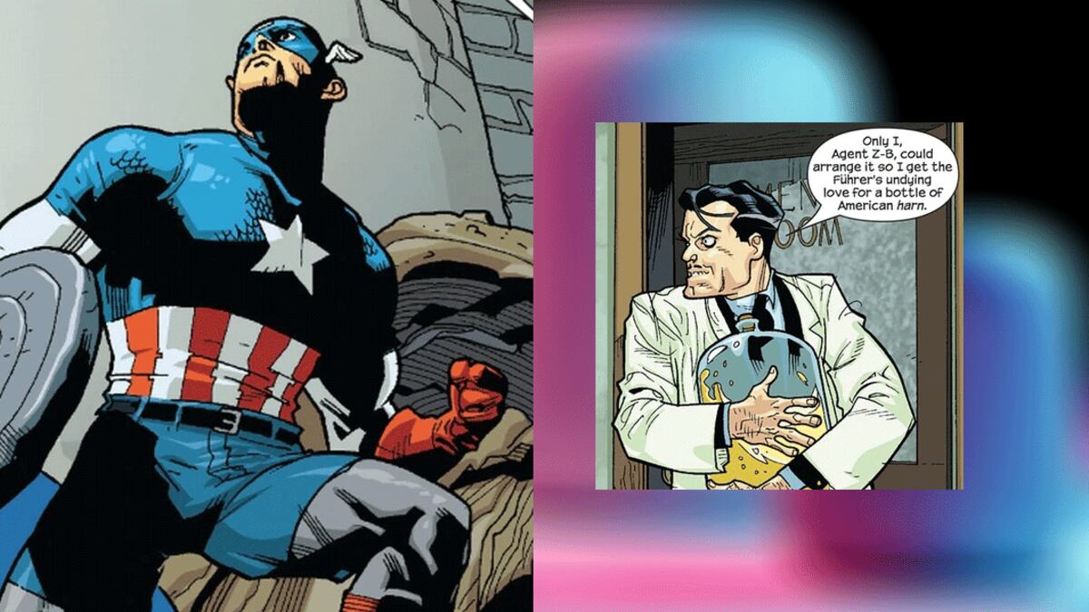 Es justo tras la creación del héroe que entra a escena un personaje, el Agent Z-B, un Nazi que se infiltra en la instalaciones del experimento con una sola meta: robar la orina de Steve Rogers.