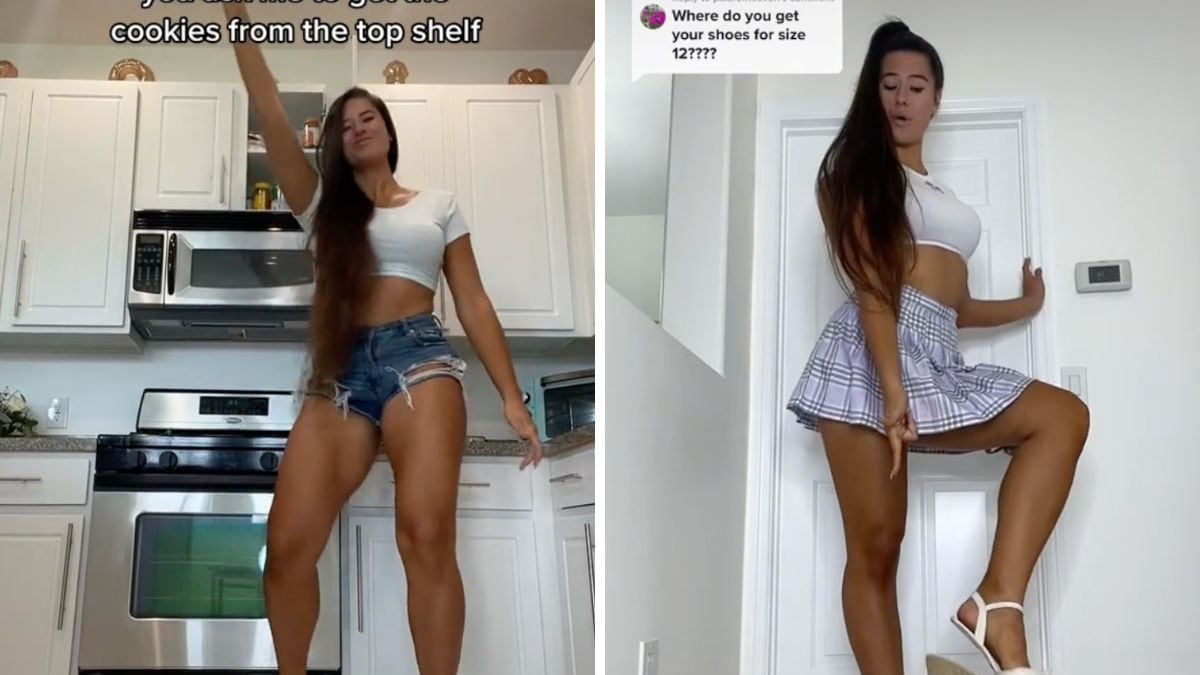 La joven, de 27 años, reveló que mide 1. 87 cm y ha decidido aprovechar su gran altura para hacer contenido en la que se ve más alta de lo que ya es.
