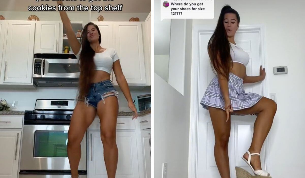 La joven, de 27 años, reveló que mide 1. 87 cm y ha decidido aprovechar su gran altura para hacer contenido en la que se ve más alta de lo que ya es.