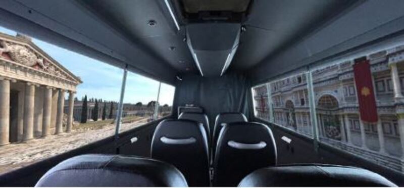 Es un vehículo de 16 asientos con tecnología 3D de última generación, que da a los pasajeros la oportunidad de ver cómo era la capital del imperio desde su ventana.