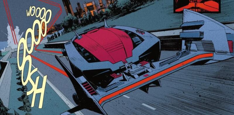 Lo más impresionante de este nuevo batimóvil es que tiene la capacidad de volar, una idea plasmada en arte por Sean Murphy en el nuevo cómic de DC Cómics, el número 4 de Batman: Beyond the White Knight.