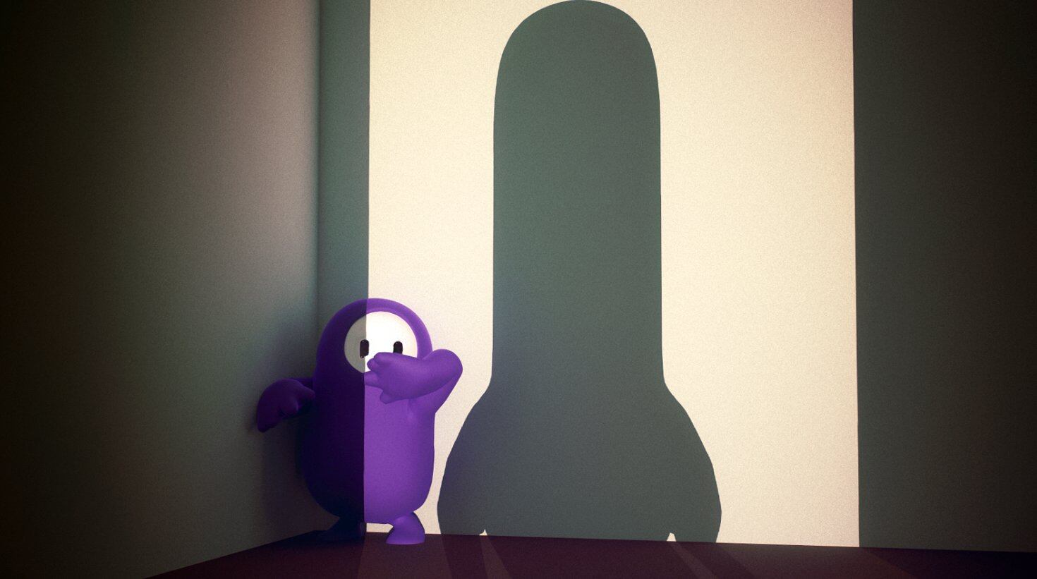 “Un Fall Guy se retira a la esquina de la habitación cuando entra una forma muy alta. No podemos ver cuál es la forma, solo su sombra. Parece ser una gran forma redondeada con dos formas curvas más pequeñas en la base. ¿Quién podría estar proyectando una sombra tan LARGA?”.