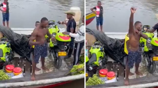 En las imágenes se observa cómo el hombre se prepara, mueve el cuello de lado a lado, estira los brazos y le da algunas instrucciones a tres hombres que se encuentran en la barca, revisa quiénes están en el puerto y señala a algunas partes. Después, baja un joven más y entre los cinco levantan una motocicleta de la Policía Nacional para que el Hulk colombiano se la acomode en el hombro y la suba al puerto.