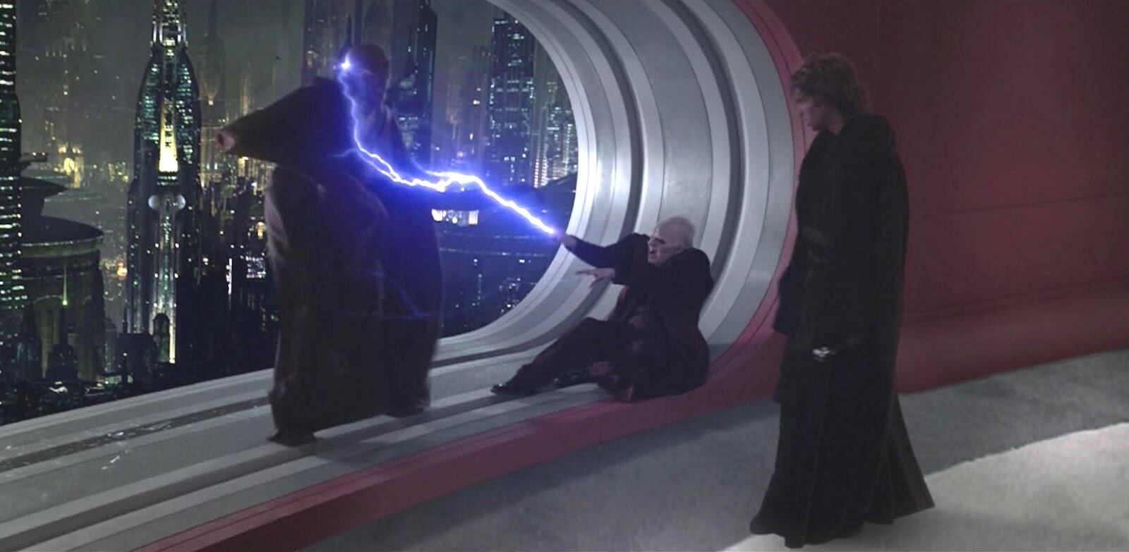 El momento de la conversión ocurrió cuando Mace Windu descubre que el Senador está al frente de los Sith y lo enfrenta en un duelo a muerte. Allí, Palpatine parece que se deja vencer, buscando que Anakin lo defienda. Skywalker le corta un brazo a Windu, que termina cayendo al vacío y muere.