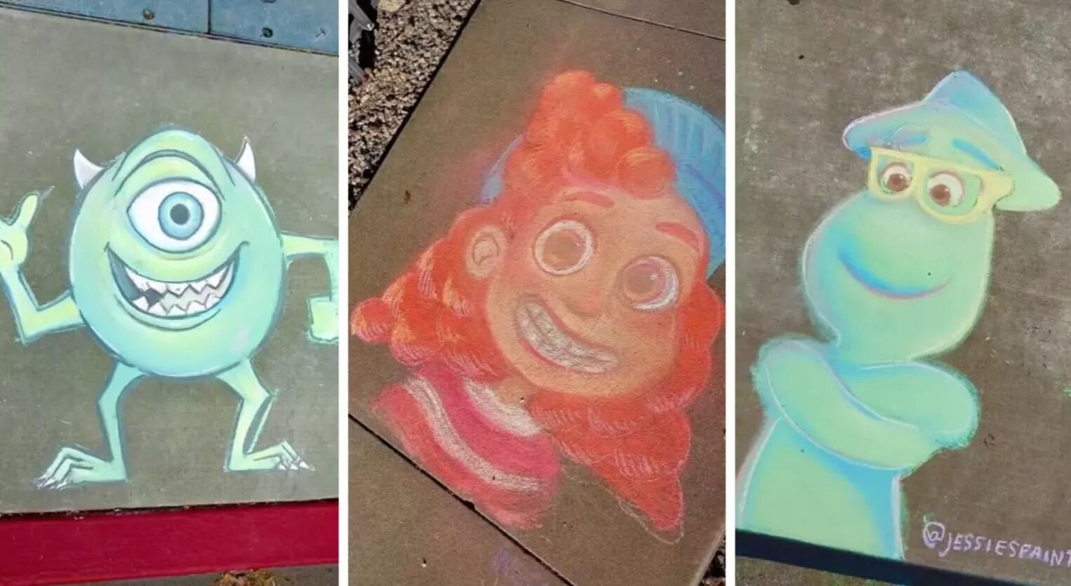 Esta joven de 22 años, estudiante de la Universidad Estatal de San Francisco y usuaria de TikTok, lleva más de un año acercándose a los estudios ubicados en Emeryville, California, para dibujar personajes de la franquicia como Nemo, Mike Wazowski, entre otros, en las aceras de las instalaciones.