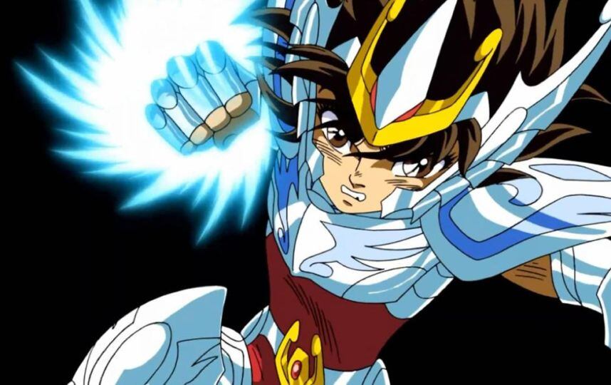Lo que vemos en la ilustración es el simple Seiya de siempre con su cloth de bronce. La primera diferencia está en la expresión (y dibujo) de su rostro. La forma de los ojos y el trazo facial es directamente diferente a lo que hizo Masami Kurumada.