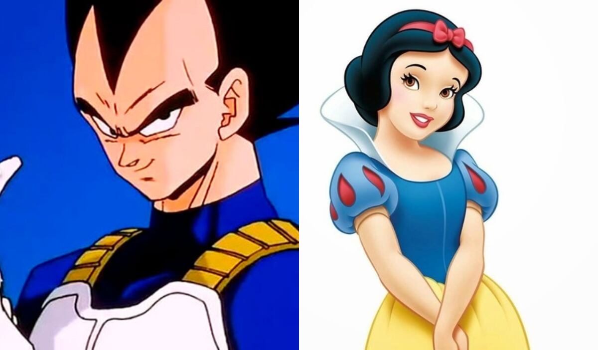 Pero el otro no tiene lógica alguna, ya que el príncipe saiyajin se convierte en la princesa Rapunzel con una larga cabellera.