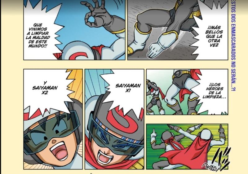 Precisamente el nombre del arco coincide con el de la reciente película de la franquicia, Super Héroe. Y muestra al par de jóvenes saiyajines luchando por la justicia con disfraces similares a los que usaba Gohan en el último arco de Dragon Ball Z.