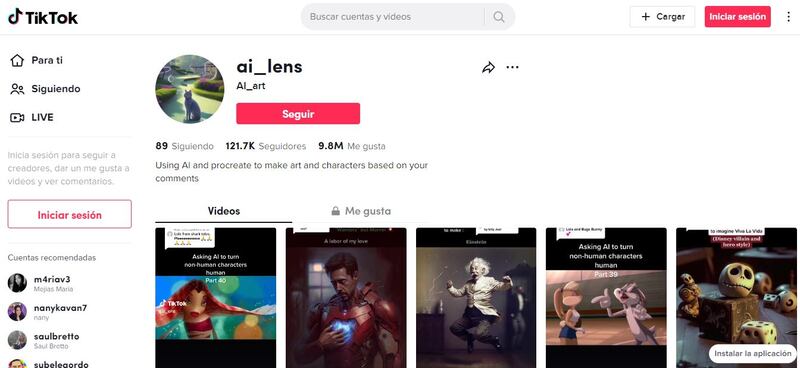 Ai_Lens cuenta con 121.7 mil seguidores, acumulando 9.8 millones de Me Gusta. En su bio explica: “Uso IA y Procreate para hacer arte y personajes basados en sus comentarios”.