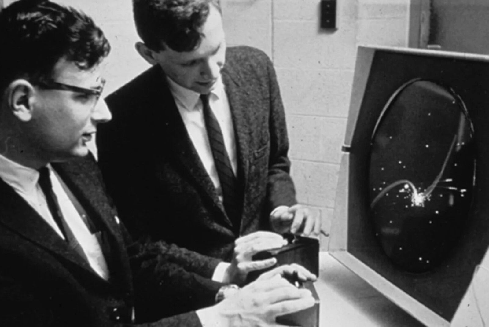 La curiosa imagen de varios jóvenes jugando frente a sus respectivas pantallas sirve de marco para otro registro histórico de Spacewar!: fue el primer videojuego que contó con su torneo propio.