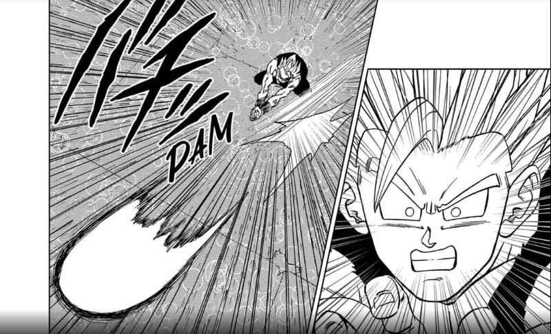 El joven saiyajin se enfrenta a uno de los androides Gamma y comienza poco a poco a mostrar su poder, el cual sabemos que se encamina a concluir en la transformación Beast o Bestia.