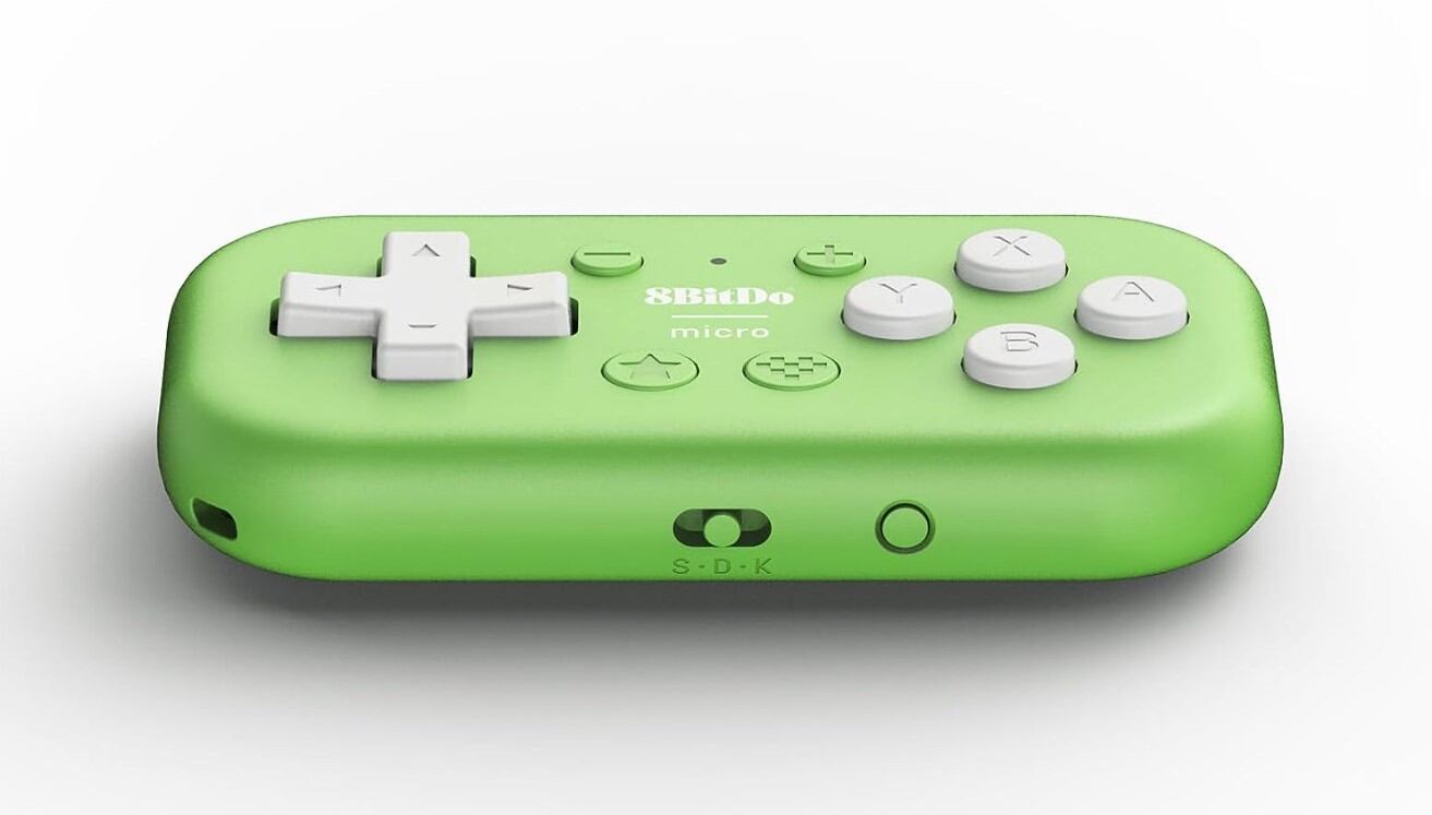 Se trada del 8BitDo Micro, un controlador Bluetooth de tamaño compacto diseñado especialmente para la consola Switch y dispositivos Android. A pesar de sus dimensiones de tan solo 7240,714,1 mm y un peso pluma de 24,8 gramos, este controlador no escatima en funcionalidades.
