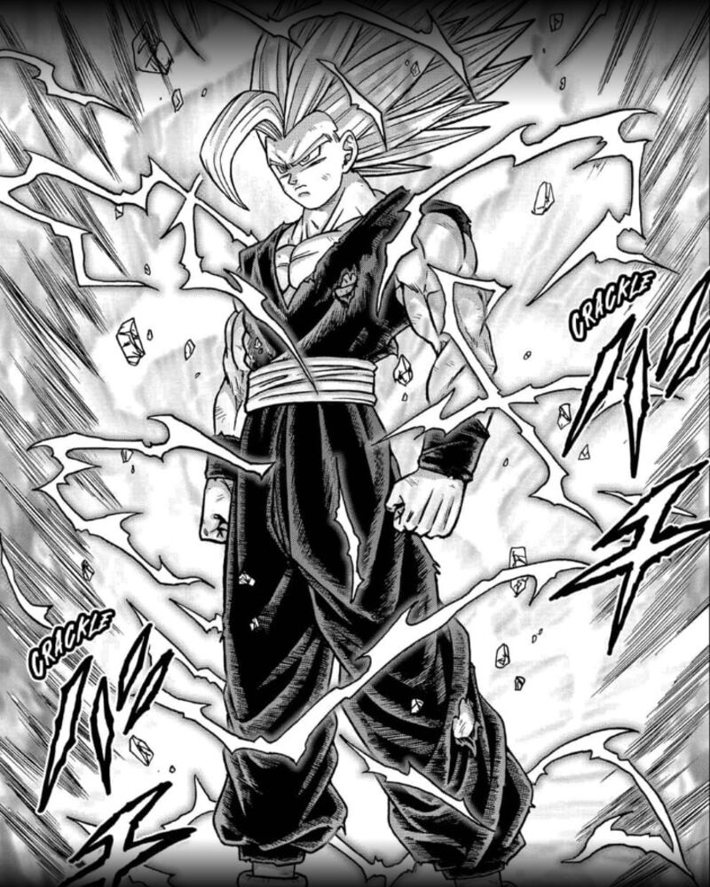 No obstante, en el más reciente arco del manga de Dragon Ball Super, que desarrolla las amenazas del renacer de la Patrulla Roja, y la creación de una nueva versión del bioandroide Cell Max, obliga al joven saiyajin híbrido a sacar sus poderes escondidos, a los que accedió tras realizar entrenamientos en secreto, sin decirle a su padre o a su maestro, Piccolo.