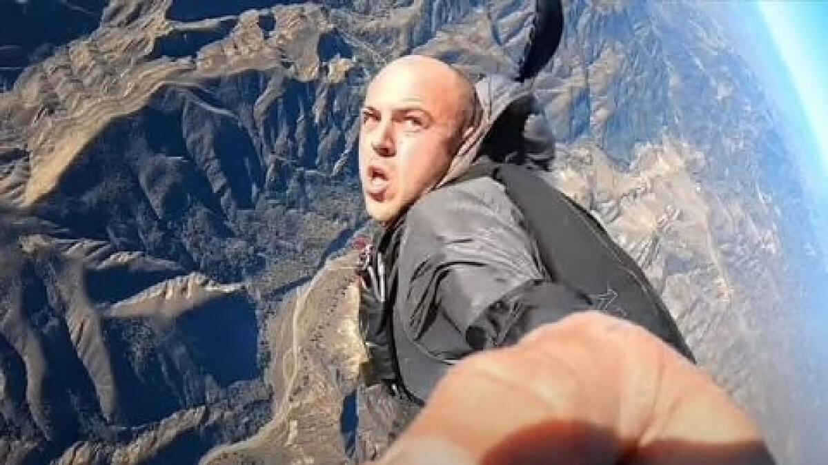 Sin embargo, si observamos con detenimiento el video notaremos algunas casualidades demasiado grandes. Como el hecho de que tuviera un paracaídas ya en abrochado desde el despegue, igual que un selfie stick a la mano para documentar todo.
