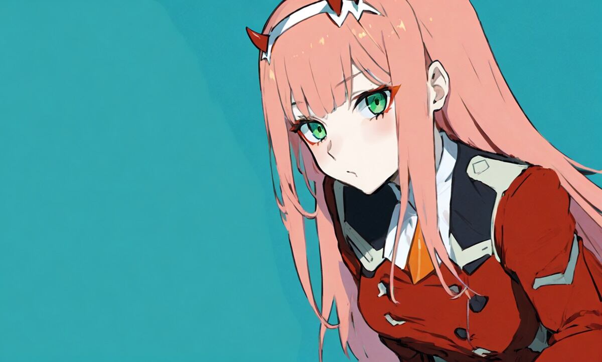 Zero Two es una joven mujer de pelo largo y rosa claro, ojos verdes y marcas de klaxo sapien en su cuerpo. Es una persona impulsiva y apasionada, con una personalidad fuerte y dominante. Es también muy inteligente y adaptable, y tiene una gran capacidad de liderazgo.