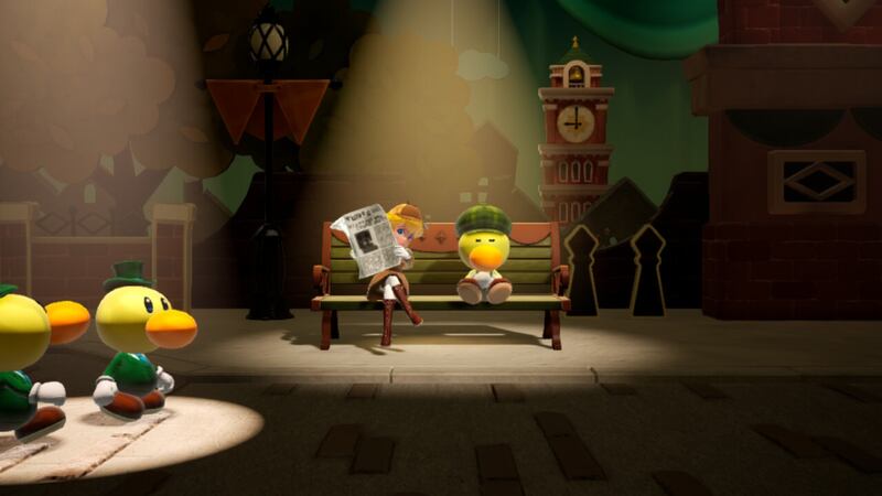 El corazón del juego es ese: ir tomando roles distintos. Lo bueno, es que el progreso no es lineal, ya que en el teatro estarás más en modo libre, pudiendo elegir cual será tu próxima aventura. Debo decir que ese espacio me recordó al castillo de Super Mario 64. El teatro se divide en plantas, donde hay 4 obras. Una vez que completes esas 4 aventuras, enfrentarás a un jefe para pasar a la siguiente área.