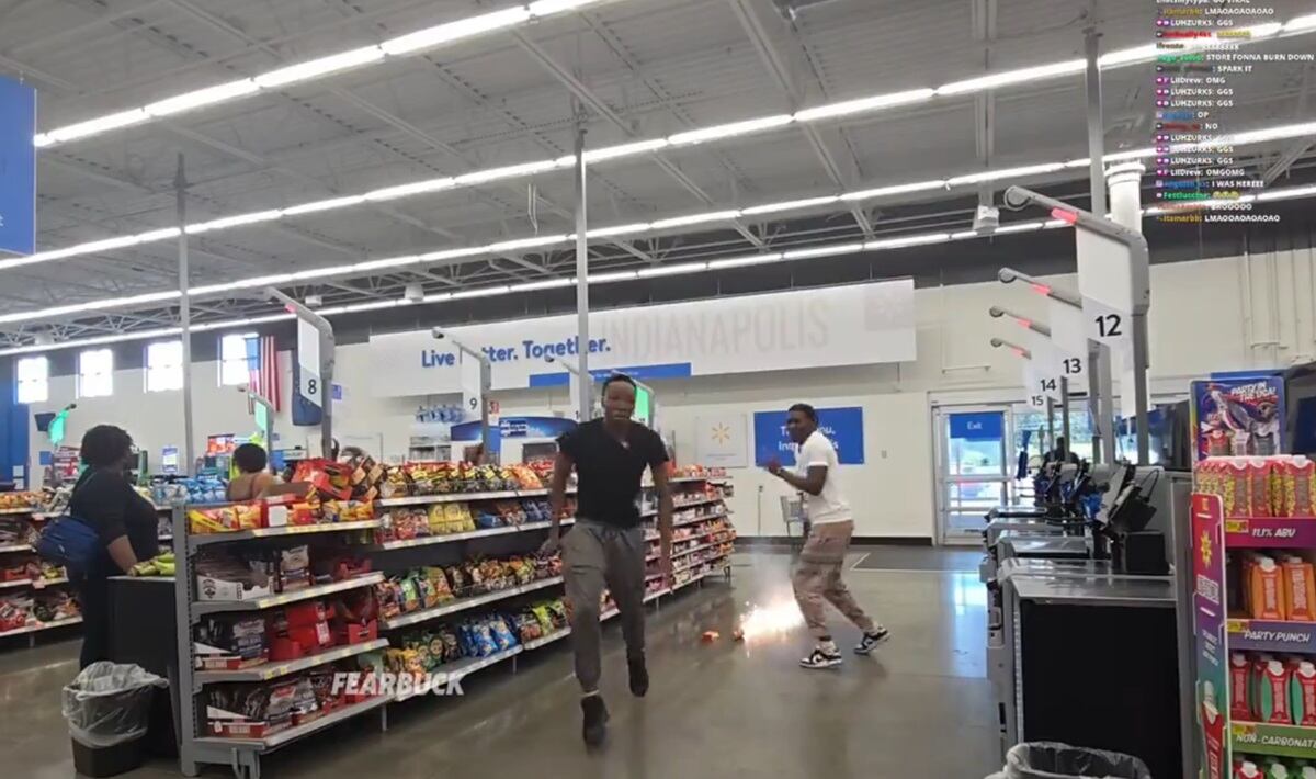 Identificados por sus usuarios como BallersBackx y HateCaps, los dos creadores de contenido ingresaron a un mercado y justo en el área de las golosinas lanzaron explosivos de pirotecnia al suelo.