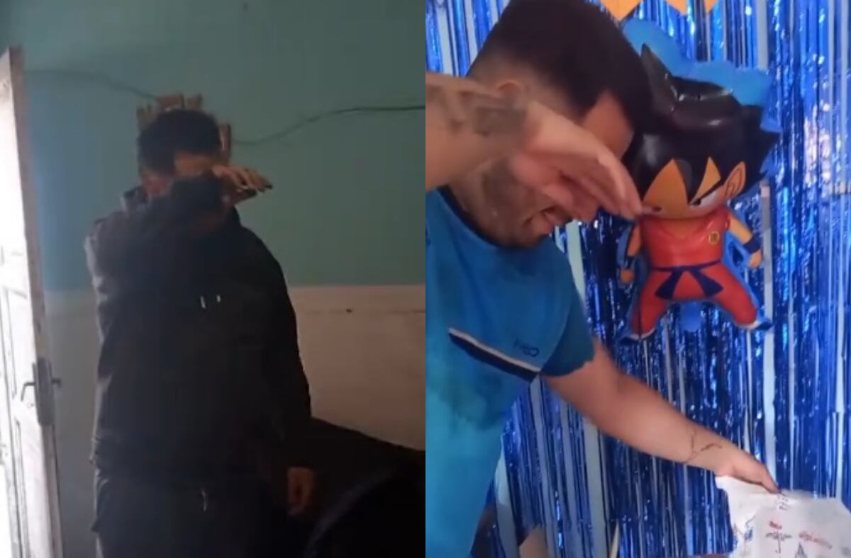Es por eso que Andrea le preparó todo un cotillón, tal cual fiesta para niños, con el motivo de Goku y Dragon Ball. Lo esperó en su casa a que llegara del trabajo y cuando abrió la puerta se encontró con la decoración. Su reacción viene de varias partes.