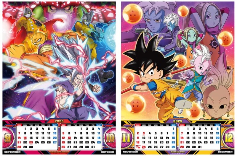 El producto oficial de la serie tiene la representación de cada mes con brutales imágenes que dan un repaso por la historia de la máxima obra de Akira Toriyama. El calendario de Dragon Ball 2025 inicia con ilustraciones de los primeros arcos del manga y anime, pasa por Dragon Ball Z, GT Super y hasta incluye diseños de Dragon Ball Daima.